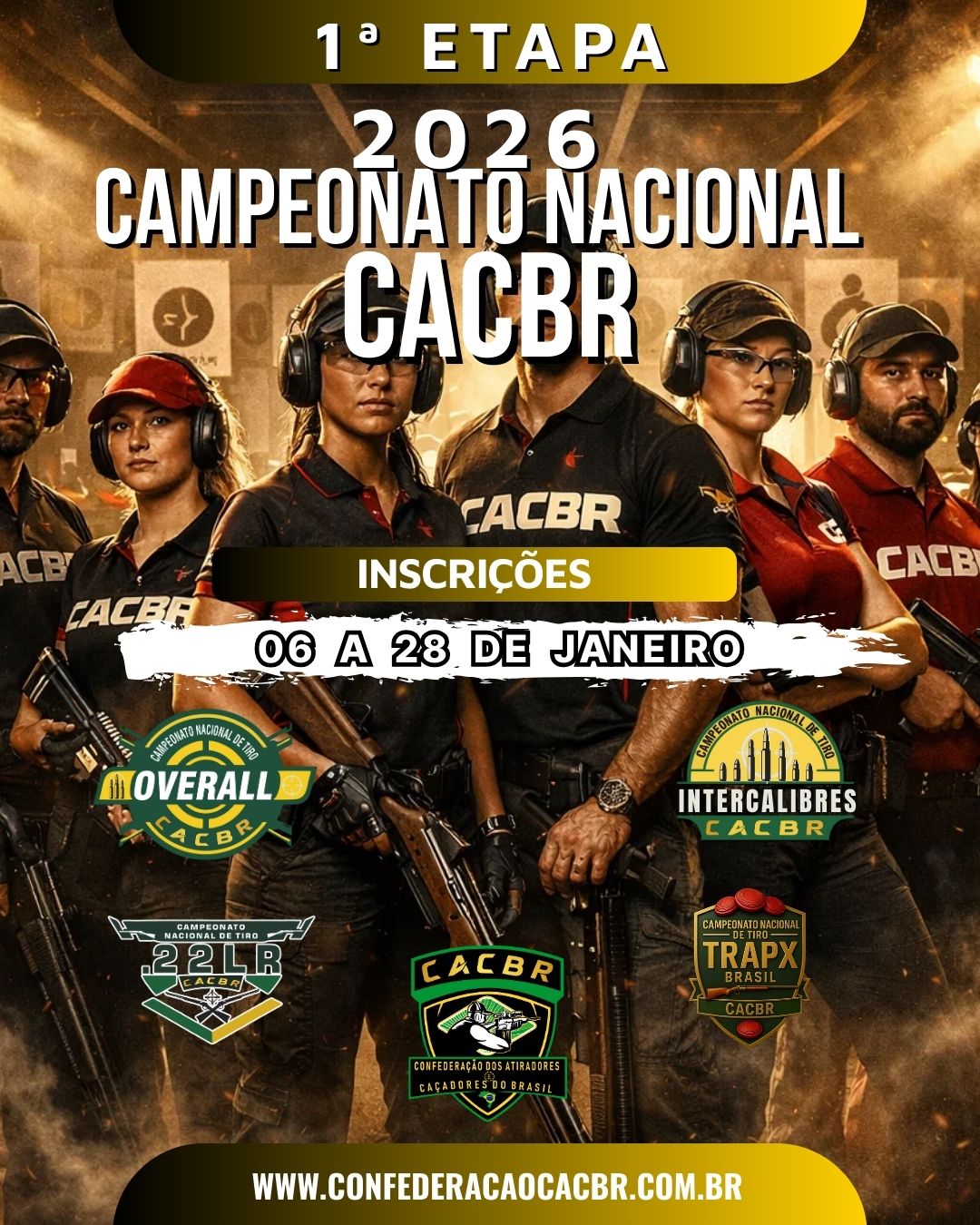 A Confederação dos Atiradores e Caçadores do Brasil – CACBR dá início oficial à Temporada 2026 com a abertura da 1ª Etapa dos Campeonatos Nacionais de Tiro, que será realizada de 06 a 28 de janeiro, em Clubes de Tiro filiados em todo o território nacional.