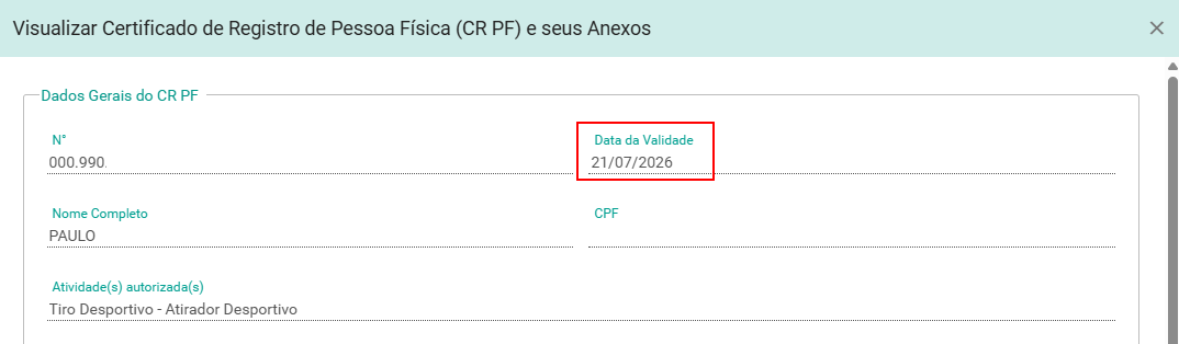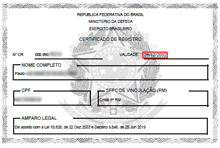 Os Certificados de Registro (CR) emitidos antes do Decreto nº 11.615/23 e antes da Portaria COLOG 166/23 continuam com validade reduzida e têm vencimento fixado para 21 de julho de 2026, conforme exibido nos sistemas oficiais — tanto no SISGCorp/Sigma (Exército) quanto no SINARM-CAC (Polícia Federal). Até o momento, nenhuma norma restabeleceu a validade de 10 anos para esses registros antigos.