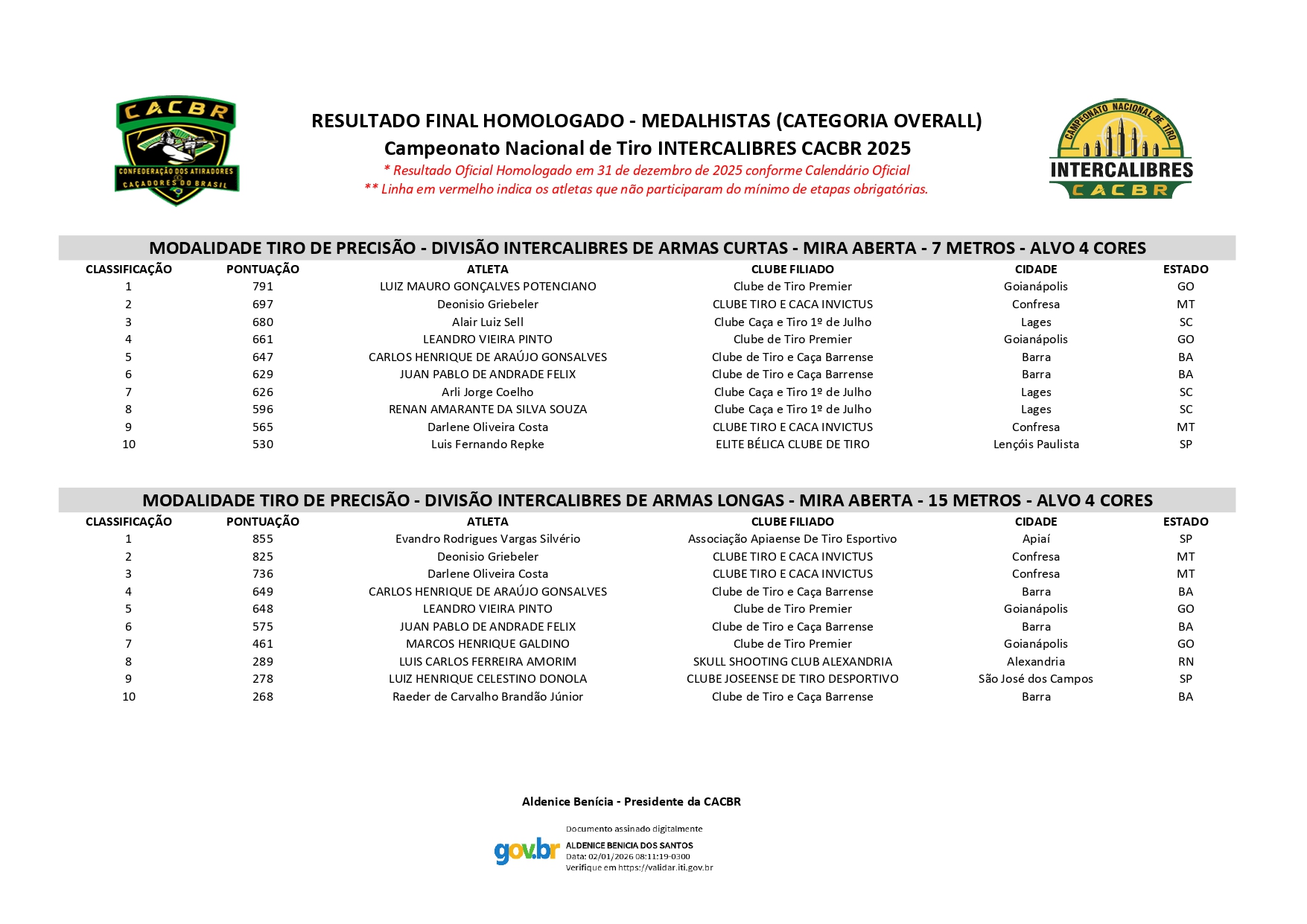 Confira aqui os Medalhistas do Campeonato Nacional de Tiro INTERCALIBRES CACBR 2025